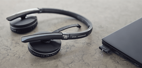 EPOS RecommendsWired, single-sided / double-sided headset with USB connectivity | On-ear, single-sided / double-sided Bluetooth® headset with USB dongle |