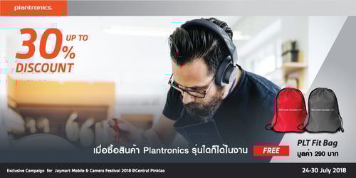 พิเศษ ซื้อ Backbeat FIT ราคาพิเศษ 3,290 บาท พร้อมรับประกัน 2 ปีเต็ม (เมื่อลงทะเบียน) พร้อมรับฟรีกระเป๋า PLT FIT bag เมื่อซื้อหูฟัง Plantronics รุ่นใดก็ได้ ภายในงาน งานนี้พลาดไม่ได้แล้ว