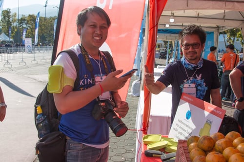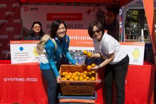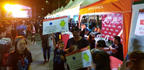 ซึ้งใจกับภาพทีมวิ่งก้าว..ช่วยกันเข็นรถขึ้นเขา เราจึงขอมอบหูฟังบลูทูธ Plantronics BackBeat FIT 2100 จำนวน 30 ตัว มูลค่า 100,000 บาท ตอบแทนน้ำใจแก่ทีมงานเบื้องหน้าเบื้องหลัง พร้อมเงินบริจาคเพื่อ 7 โรงพยาบาลในภาคเหนือ เพิ่มเติมอีก 69,999.99 บาท ส่วนหนึ่งเป็นรายได้จากการจำหน่าย Armband ภายในงานค่ะ