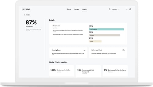 Poly Lens software gives IT teams visibility and control over voice, video, and headset devices. Deploy, configure, update, and get valuable insights from one endpoint or thousands using one scalable platform. Poly Lens makes it simple: no heavy IT lifting required.