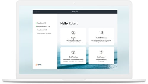 Get the most out of your Poly devices. Use one convenient app to manage all your compatible devices. Keep software up to date, manage settings, and use the personal health and wellness reminders to keep you focused and energized all day long. With the Poly Lens App, you can customize your devices to work the way you do.