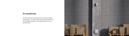 ระบบไฟฟ้า ของอาคาร ทำให้ระบบ AJAX สามารถปกป้องอาคารสถานที่ต่างๆ อาทิเช่น สถานที่ก่อสร้างหรืออสังหาริมทรัพย์ที่ถูกทิ้งร้าง