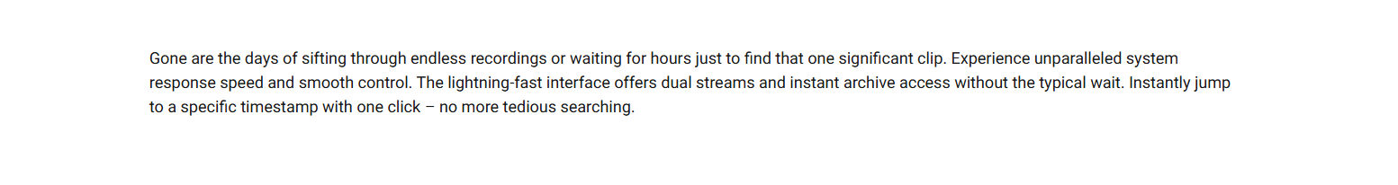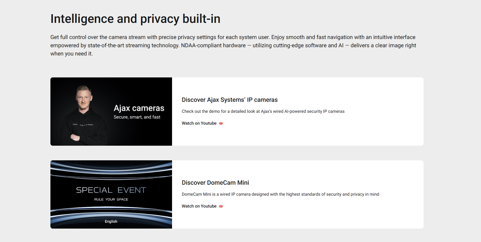 Get full control over the camera stream with precise privacy settings for each system user. Enjoy smooth and fast navigation with an intuitive interface empowered by state-of-the-art streaming technology. NDAA-compliant hardware — utilizing cutting-edge software and AI — delivers a clear image right when you need it.