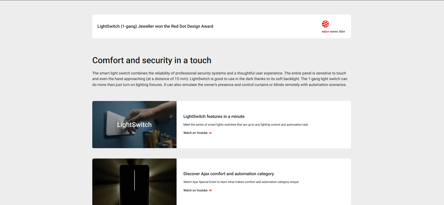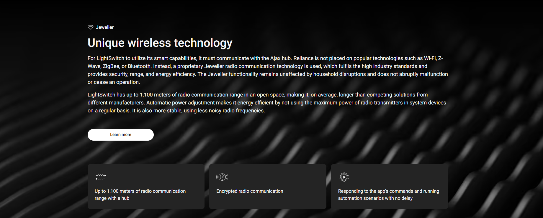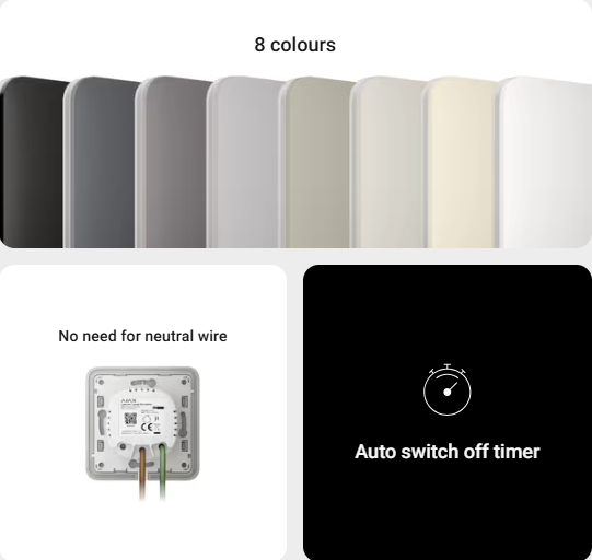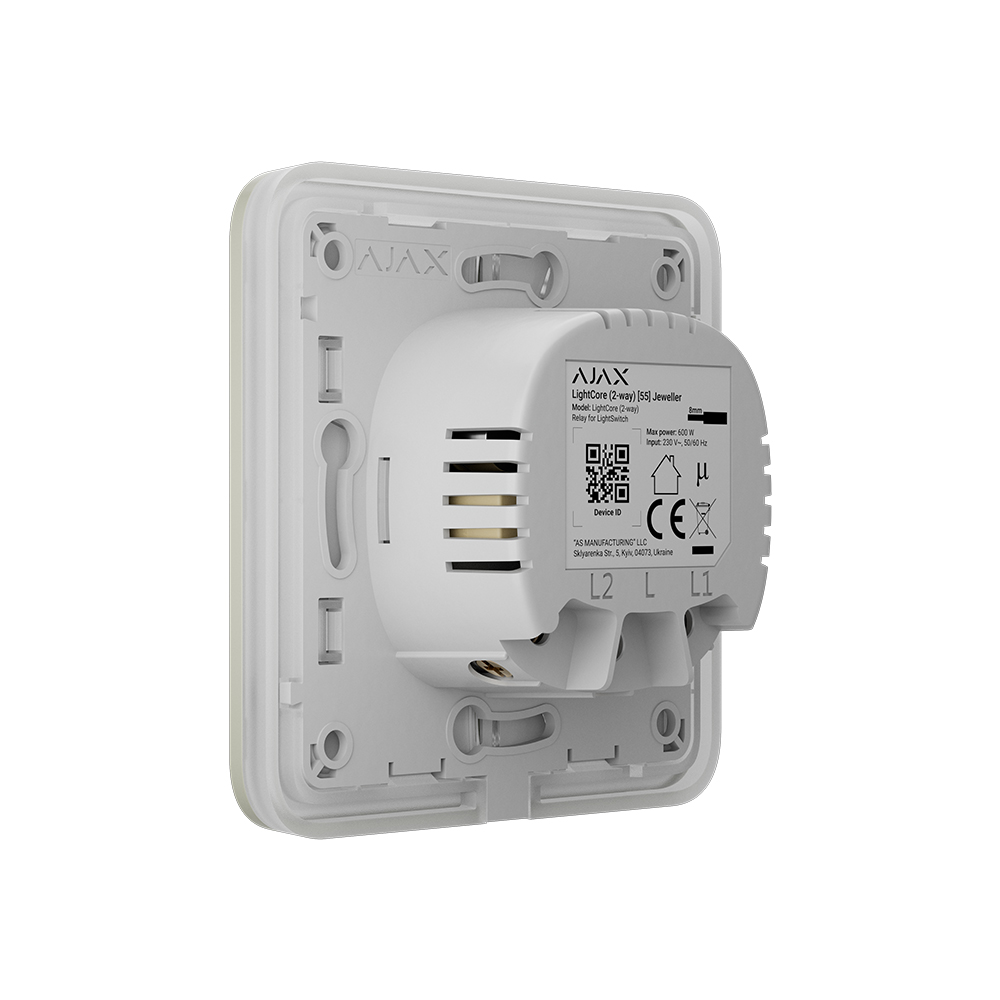 LightSwitch is a smart lighting control system that provides advanced electrical protection and reliability at the level of professional security systems. It is not necessary to set a neutral wire through the switch. It is controlled via Ajax developed software and has no problems with crashes or freezes. Also, the device has a tamper to detect the detachment of the wireless 2-way switch panel.
