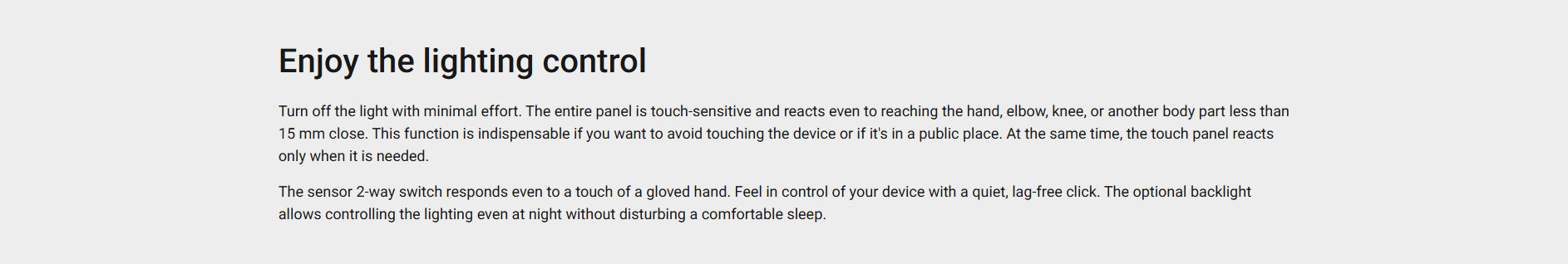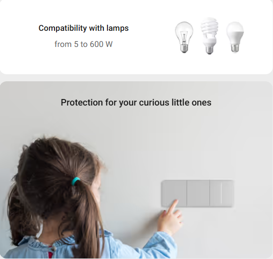 This light switch is a 2-way switch which combines the reliability of professional security systems and a thoughtful user experience. Turn on the light in long hallways, rooms with several exits, or on the stairs easily. The user knows everything that happens on-site from instant notifications. The software also synchronises 2-way switches. The first one ‘knows’ that the second one turned off the light, so the switch state is instantly visible in the app.