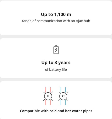 The Ajax system uses two-way secure radio communication based on Jeweller proprietary protocol. It supports block cipher encryption and device authentication on every session with the hub to prevent sabotage, spoofing, or data theft.
