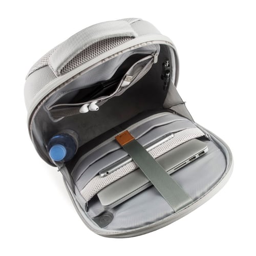 ด้านหลังถูกบุด้วยนวมนิ่ม มีช่องระบายอากาศ สายสะพายไหล่ออกแบบให้ปรับได้ ตามหลักสรีรศาสตร์ ให้ความสบาย ขณะเดินทาง
