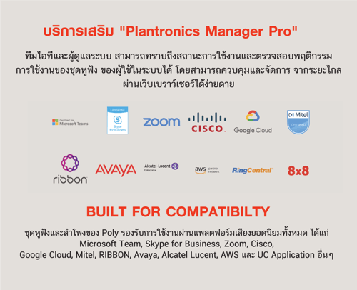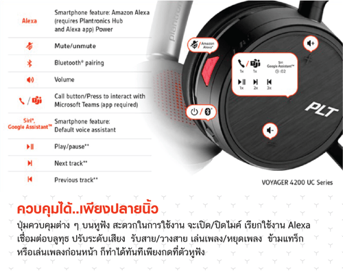 Voyager 4200 UC Series หูฟังที่ใช้ใสำนักงาน Office Worker เพื่อใช้สนทนาแบบ VoIP ผ่านโปรแกรมโทรศัพท์ IP Softphone ต่างๆ เช่น MSTEAM, SKYPE, AVAYA, CISCO, ZOOM และยังสามารถเชื่อมต่อได้ 2 อุปกรณ์พร้อมกัน (Multipoint) โดยใช้ บลูทูธเวอร์ชั่น 4.1 และยังเชื่อมต่อกับ บลูทูธ USB BT600 ที่เป็น bluetooth class 1 กับเครื่อง PC/Laptop ไปได้ไกลสูงถึง 30 เมตร