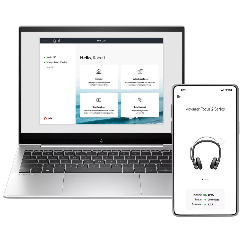 Get the most out of your Poly devices. Use one convenient app to manage all your compatible devices. Keep software up to date, manage settings, and use the personal health and wellness reminders to keep you focused and energized all day long. With the Poly Lens App, you can customize your devices to work the way you do.