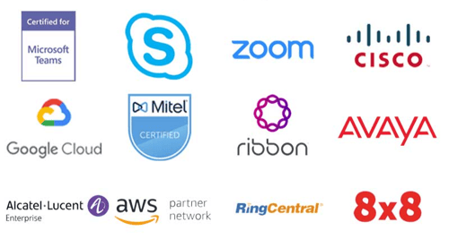 ได้แก่ Microsoft Team, Skye for Business Zoom, Cisco, Google Cloud, Mitel, RIBBON, Avaya, Alcatel Lucent, AWS และ UC Application อื่นๆ